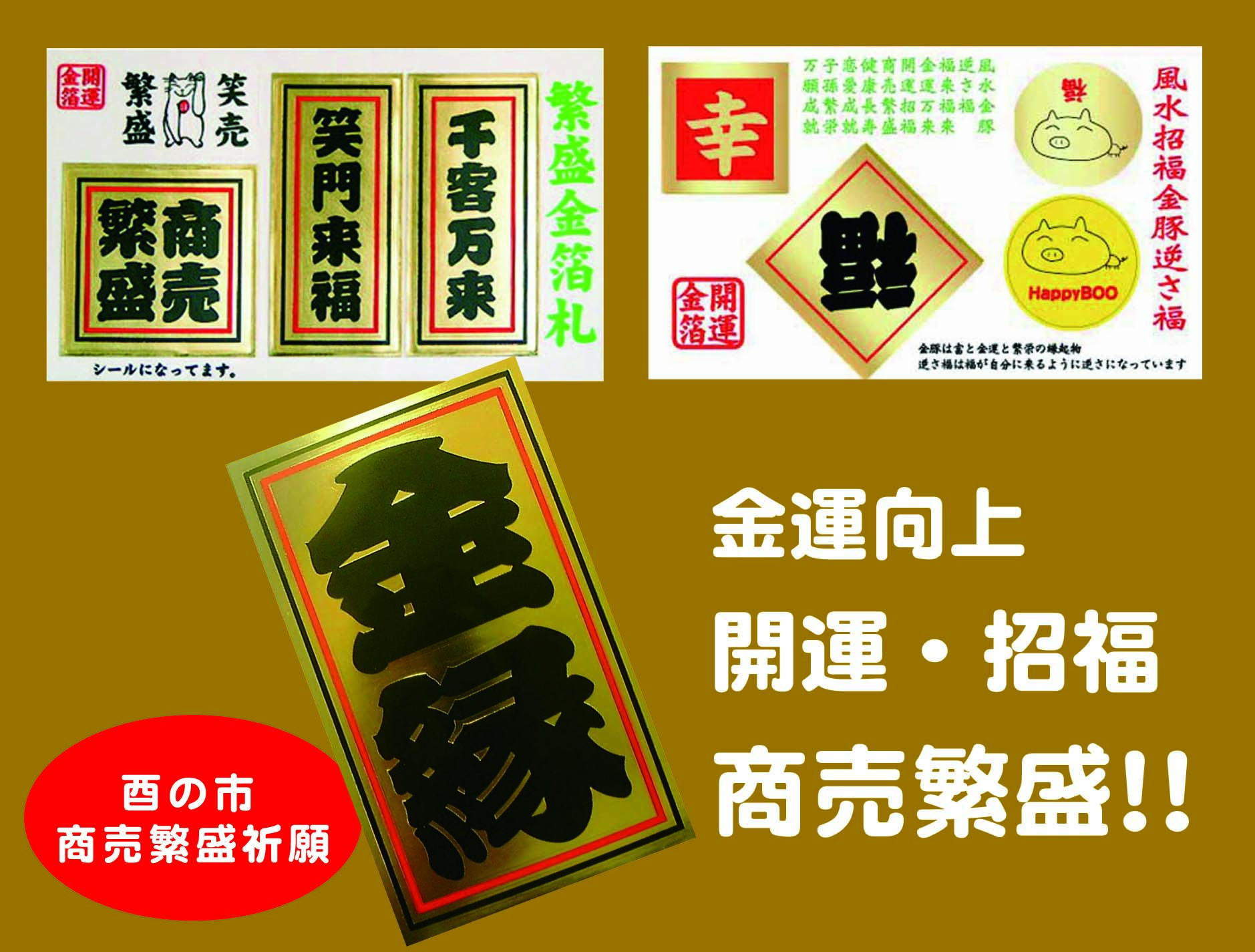 - 酉の市にちなんで「商売繁盛」などの開運金箔シールを3種各1枚プレゼント!(11月30日までにご購入の方全員に)